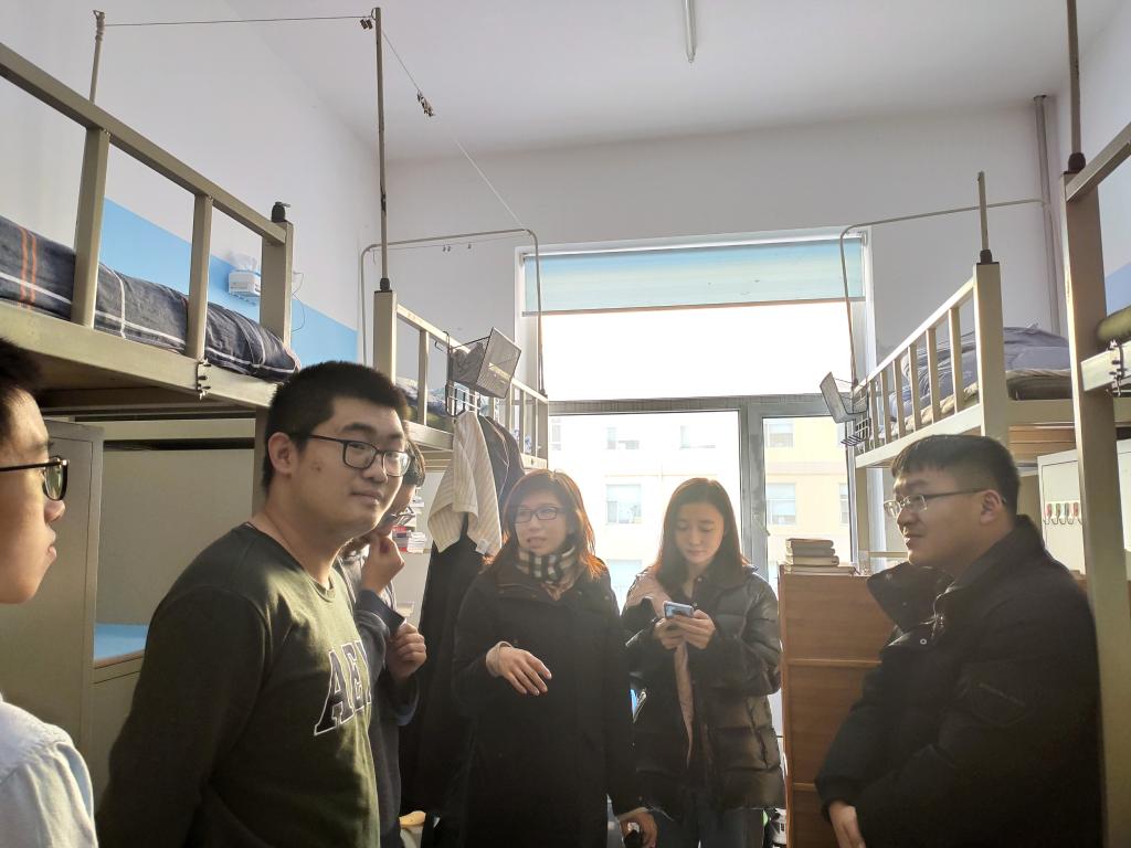 党委副书记崔妍老师、辅导员程思阳老师于12月12日前后前往大学城、北苑公寓、南苑公寓楼开展寝室检查及期末考试诚信教育工作。