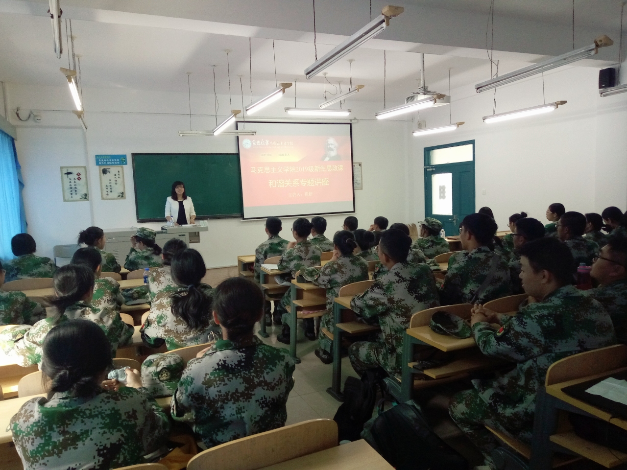党委副书记、纪委书记崔妍老师在经信教学楼C111室为思想政治教育专业全体新同学讲授《和谐关系》专题思政课。2019级全体本科新生认真聆听了本次课程,课程由辅导员程思阳主持。