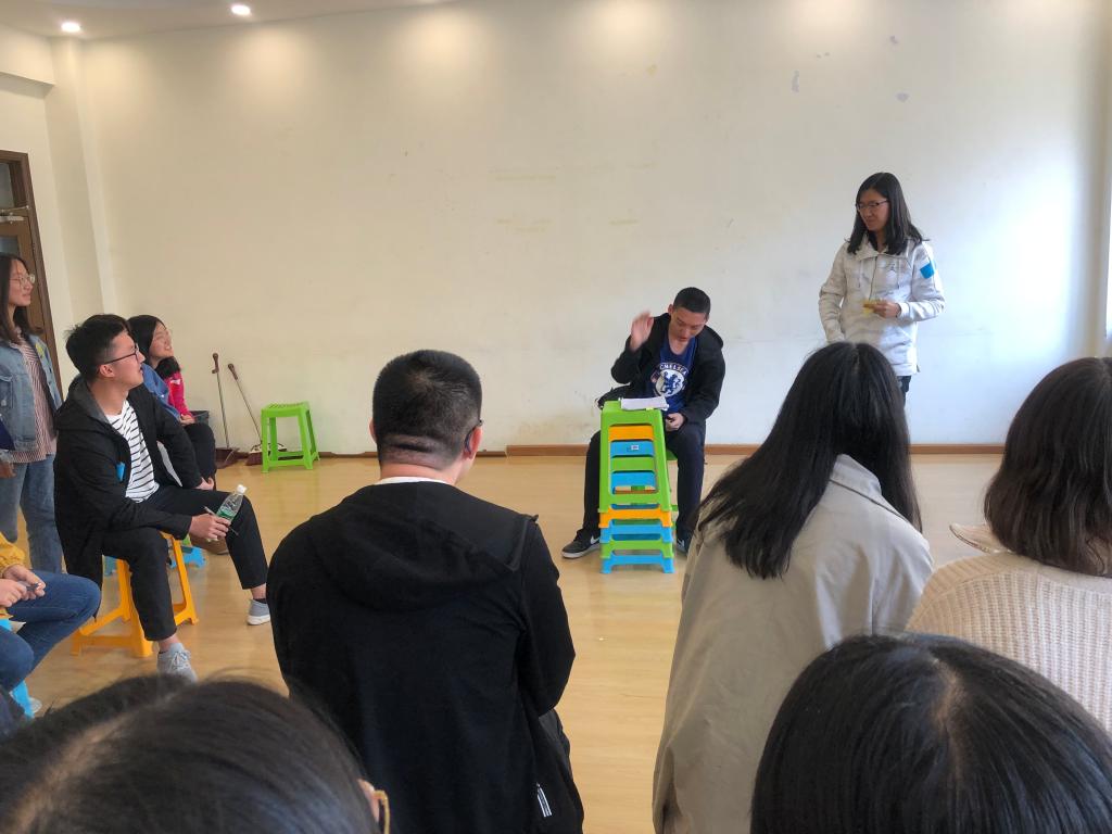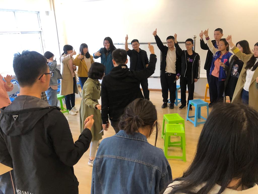 本科朋辈心理辅导员袁源主持。首先袁源介绍了本次班会的意义,引出了接下来的暖身活动。在暖身阶段,同学们全身心表达,分享自己的喜好和心情,不仅身体上做了运动,心理上也开始放松。其中的“情绪大头贴”活动让同学们学会表达情绪和辨别情绪。暖身过后正式进入班会阶段。所有人手结手的保密原则活动让同学们学会保守他人秘密。大家写的烦心事被同学们自己编演成情景剧,帮助同学们表达、觉察、正式、体验和反思,让大家有机会宣泄情绪、有产生共鸣的体验感。最后是结束阶段的分享环节,同学们自己发表了在整个班会过程中的感受,大家在愉悦轻松的气氛中,体验内化,内省自成。