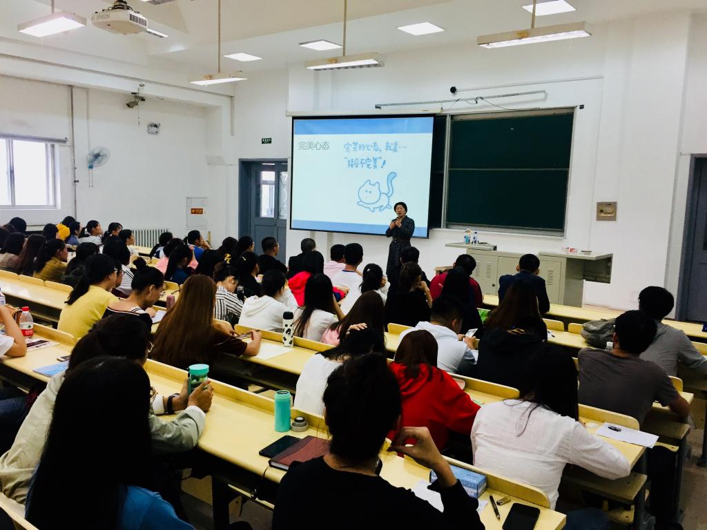 有幸邀请到心理健康指导中心何思彤老师在中心校区逸夫十六阶为新生做以“阳光心态,幸福生活”为主题的心理健康教育讲座。