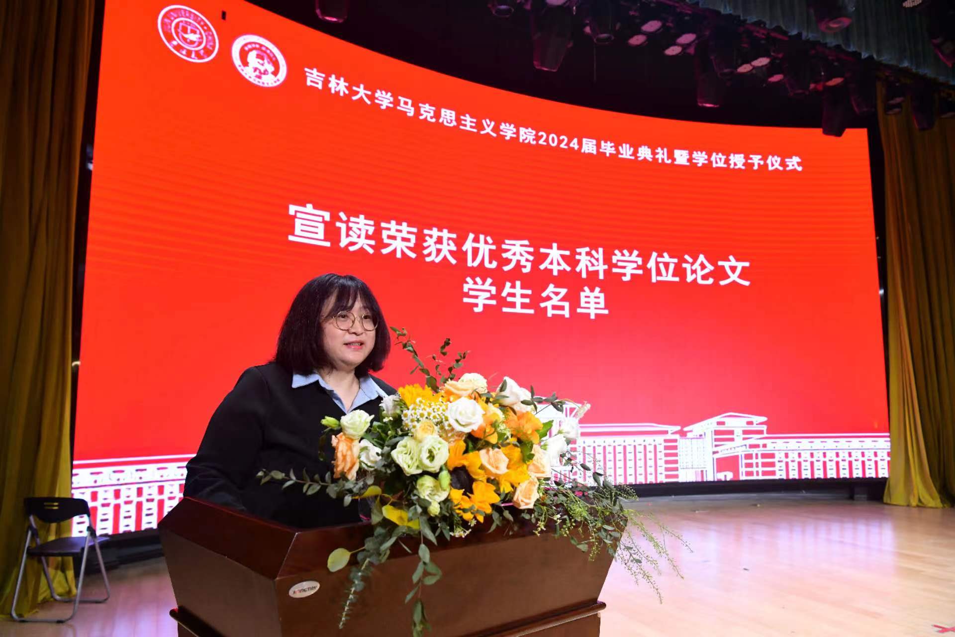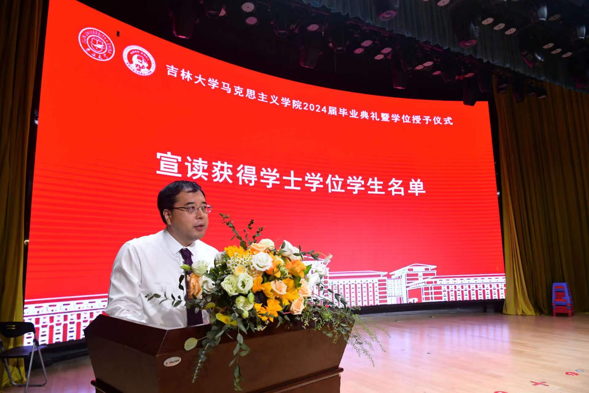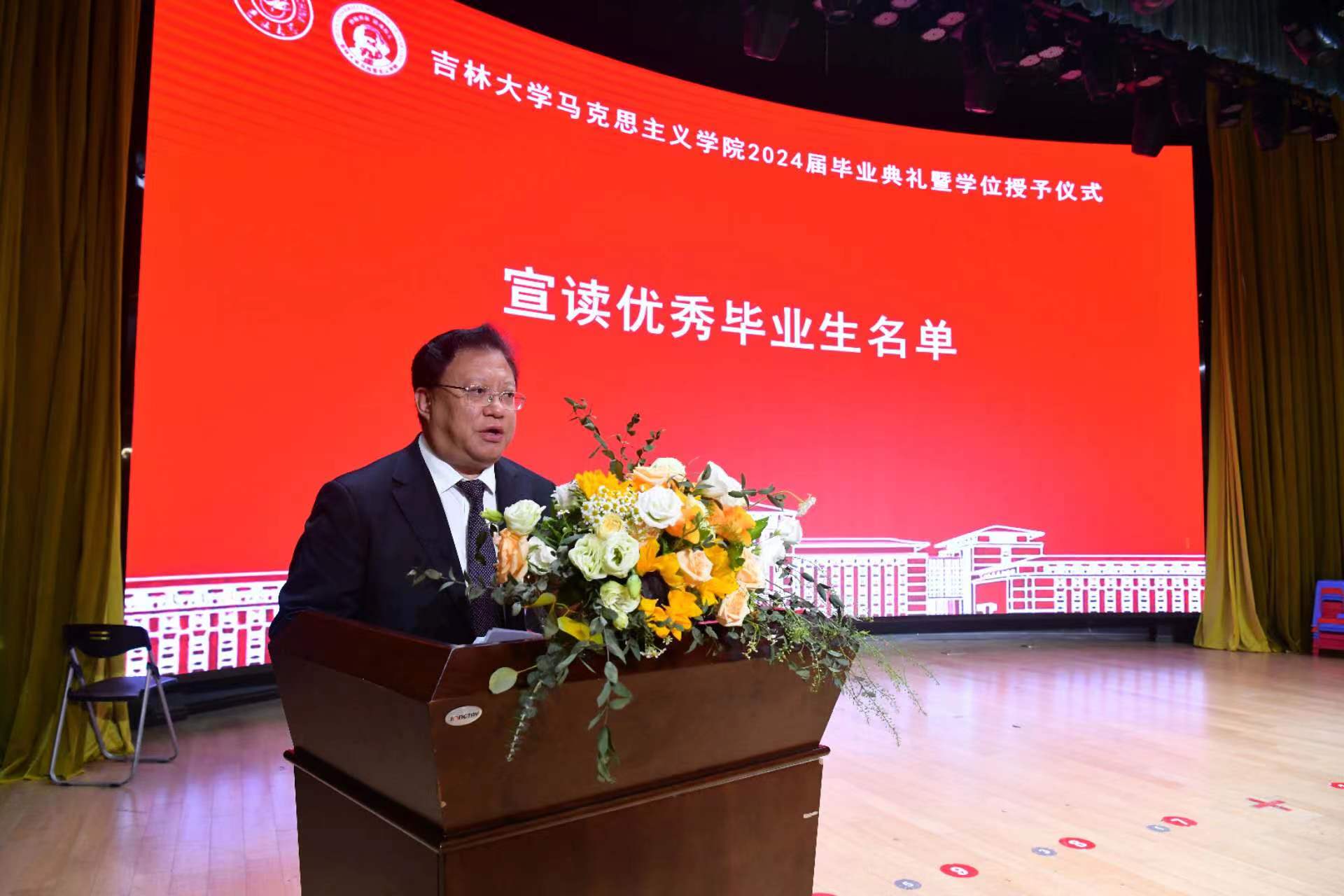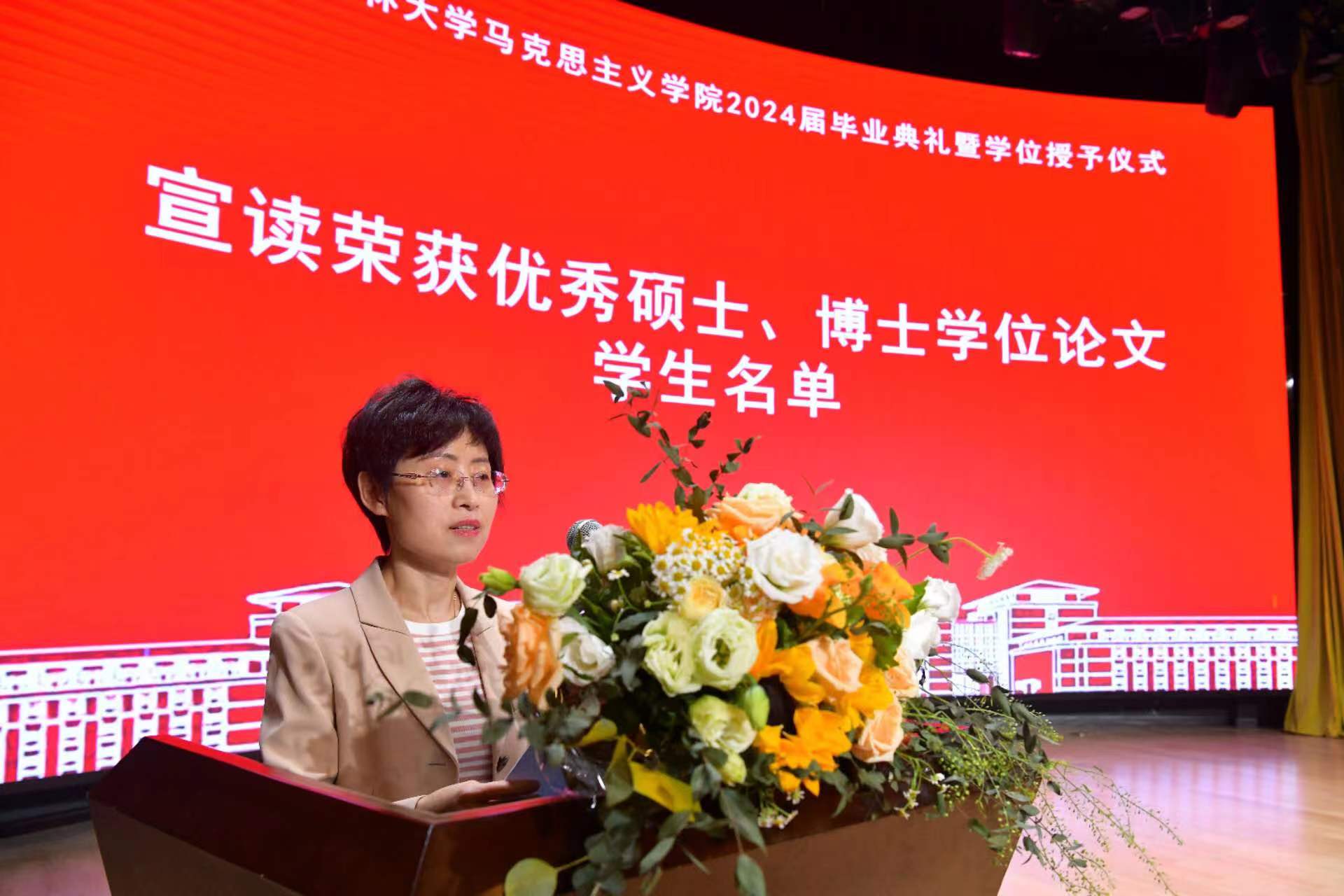 首先,董树彬副院长分别宣读2024届获得学士学位、硕士学位和博士学位学生名单,党委书记钟新宣读2024届优秀毕业生名单,钟新书记、吴宏政院长为获奖同学颁发荣誉证书,中国特色社会主义理论体系研究中心副主任高月宣读2024年本科优秀毕业论文名单,行政副院长姜鑫宣读2024年优秀博士、硕士学位论文获奖名单,国家“万人计划”哲学社会科学领军人才、韩国色情
