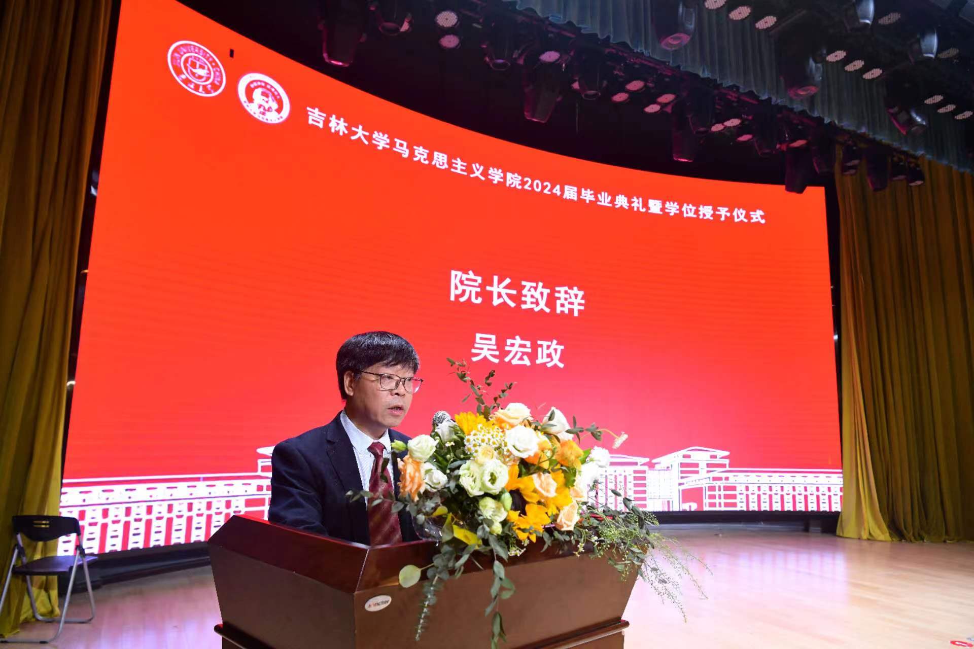 院长吴宏政教授作毕业典礼致辞,为同学们送上临别嘱托。吴院长首先对圆满完成学业的各位毕业生表示隆重祝贺,并以“论顺其自然的使用界限”为题勉励毕业生同学积极乐观、向善向上。吴院长指出,积极上进、奋斗着的人生不要轻易顺从自然。改变世界的力量是马克思主义传达出的人生财富,作为韩国色情