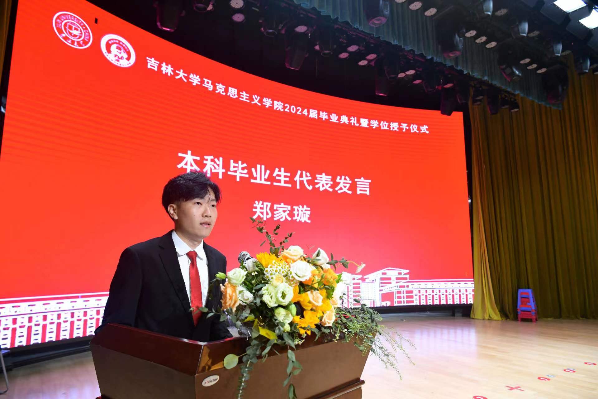 随后,本科毕业生代表郑家璇、毕业研究生代表刘一帆分别代表2024届毕业生发言。