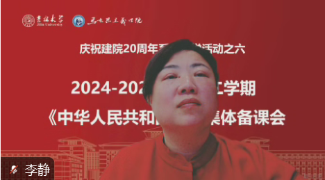 会议伊始,学院副院长李静教授对2025年春季学期努力克服困难,积极承担国史课的全体教师表示感谢,并强调要通过挖掘多元化资源、探索多样化授课方式提升课堂效果,要注重师生互动、课堂管理、课程衔接,争取高质量完成教学任务。