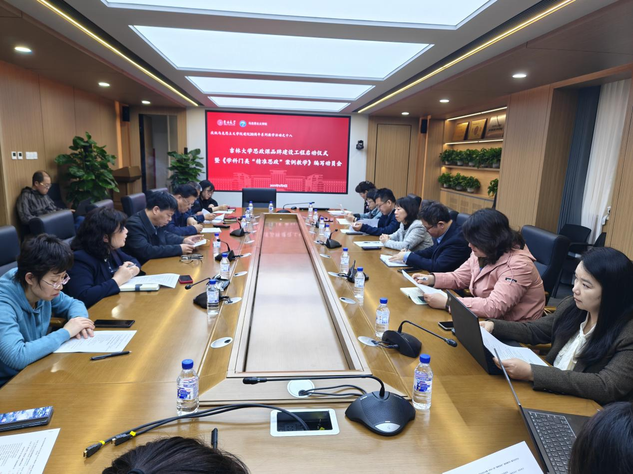 思政课品牌建设工程启动仪式暨《学科门类“精准思政”案例教学》编写动员会。学院党委钟新书记,院长吴宏政教授,副院长李静教授,各教研室主任、副主任,《学科门类“精准思政”案例教学》系列丛书主编出席会议,会议由钟新书记主持。