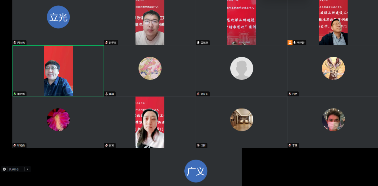 副院长李静教授和中国近现代史纲要教研室教师参加了线上会议。会议由纲要教研室副主任李晔晔老师主持。
