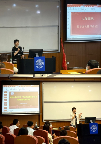 张荟同学分享了作品《青衿问道书卷里,赤帜扬帆田野间》的创作历程。她现场播放了视频的精华片段,并按照时间线,讲述了选题立意、文稿打磨到实地拍摄的全过程。指导教师陈方南教授在点评中,特别赞赏了该组同学在构思立意上的巧思和文案撰写上的用心——文本解读精准,实践呈现生动,体现了知行合一的追求。