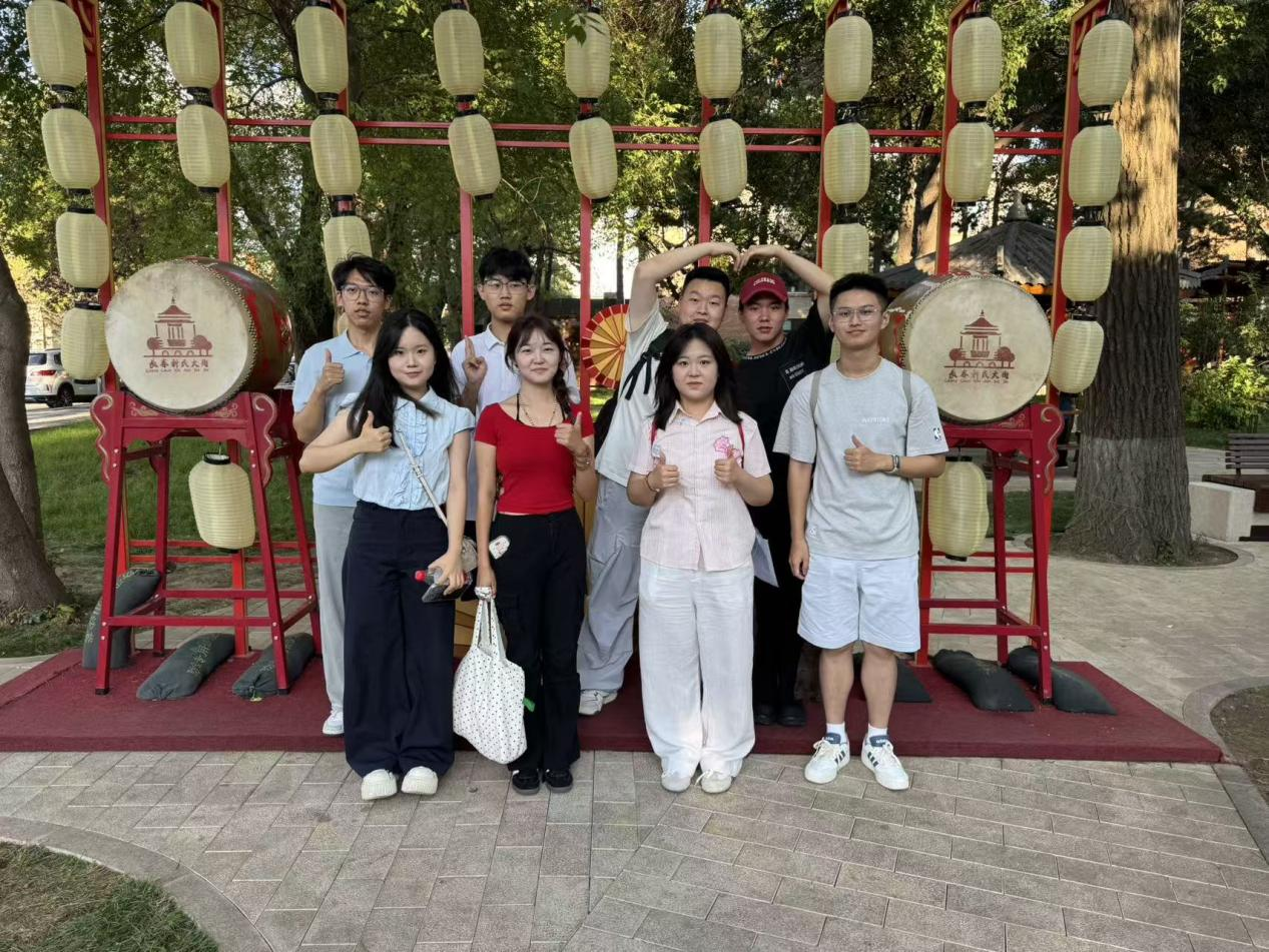 公共卫生学院)时,一场“小插曲”让拍摄多了几分趣味。为还原建筑窗棂的历史纹路,两名同学踩着台阶凑近观察,却不小心被窗台上的绿植“挡了镜头”。正当大家犯难时,王幼英老师笑着提议:“不如把绿植当前景拍,既保留历史建筑的细节,又能显出现在的生机。”按照这个思路拍摄后,镜头里雕花窗棂与翠绿叶片相映成趣,同学们纷纷称赞:“原来‘小意外’也能变成‘小亮点’!”期间,还有路过的老居民主动上前搭话,分享自己记忆里的新民大街,王老师趁机引导同学们记录这些“鲜活素材”,“老百姓的故事,才是思政课最生动的教材。”