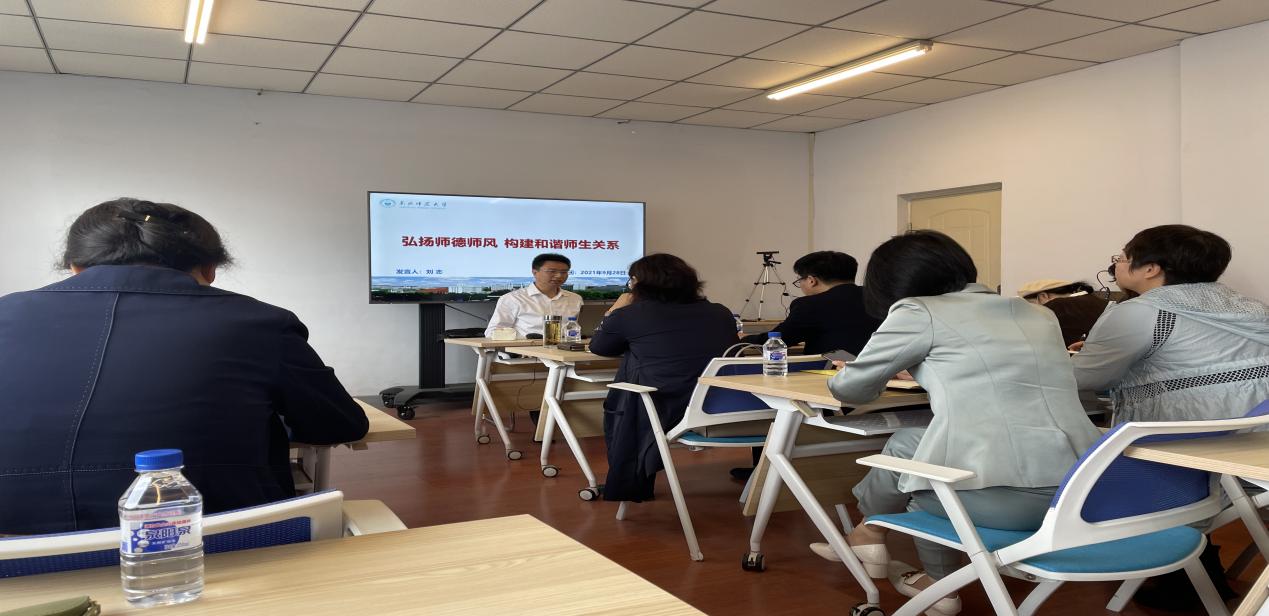 马克思主义学院基础教工党支部,邀请东北师范大学研究生院副院长刘志教授,为基础教工党支部做题为《弘扬师德师风 构建和谐师生关系》的主题党课报告。支部党员、院长吴宏政教授、副院长石瑛教授、基础教工党支部全体党员教师和部分研究生党员代表参加党课活动。党课由基础教工党支部书记常艳芳教授主持。