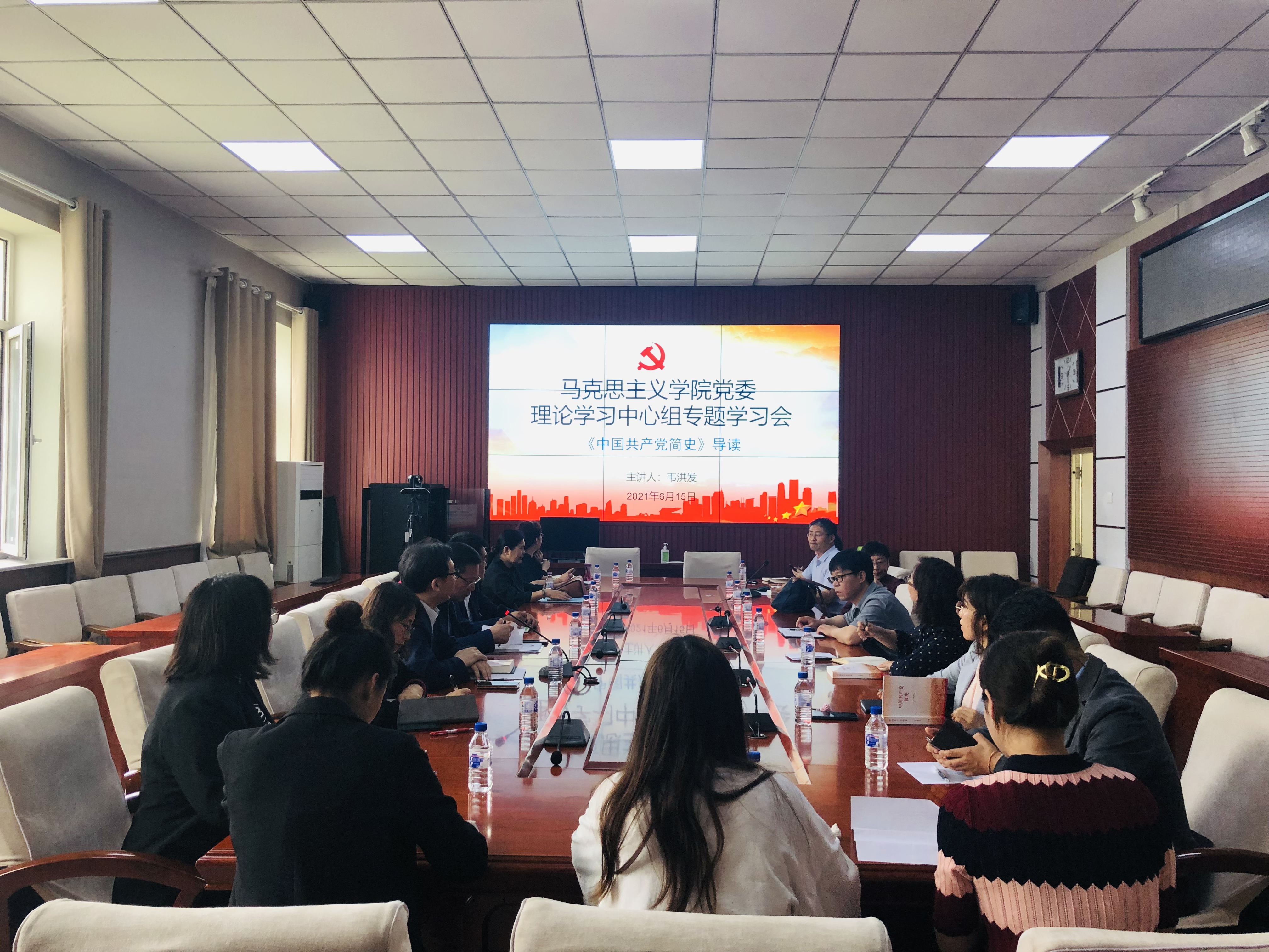 党委在一楼多媒体会议室召开理论学习中心组党史学习教育集体学习会议。学校党史学习教育指导组第九小组组长申建野、联络员陈星光、学院党委理论学习中心组全体成员、各党支部书记、教研室主任参加了学习会。此次学习会由学院党委书记霍志刚主持。