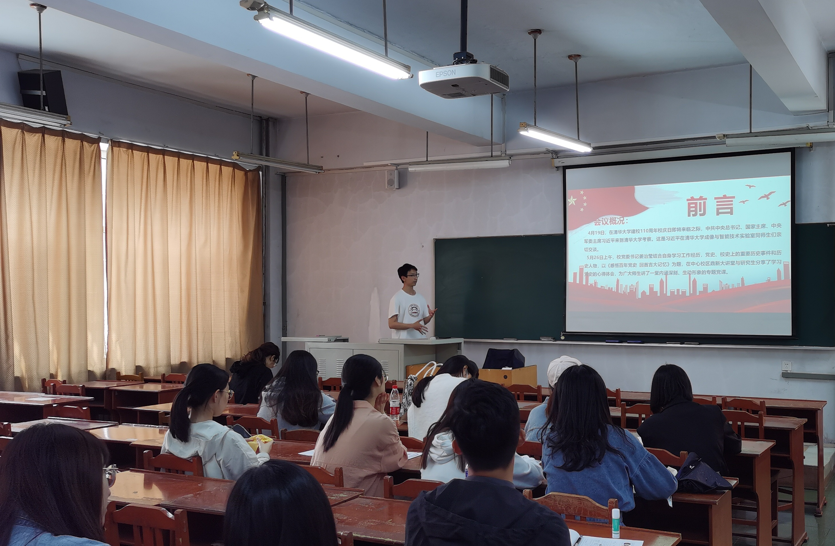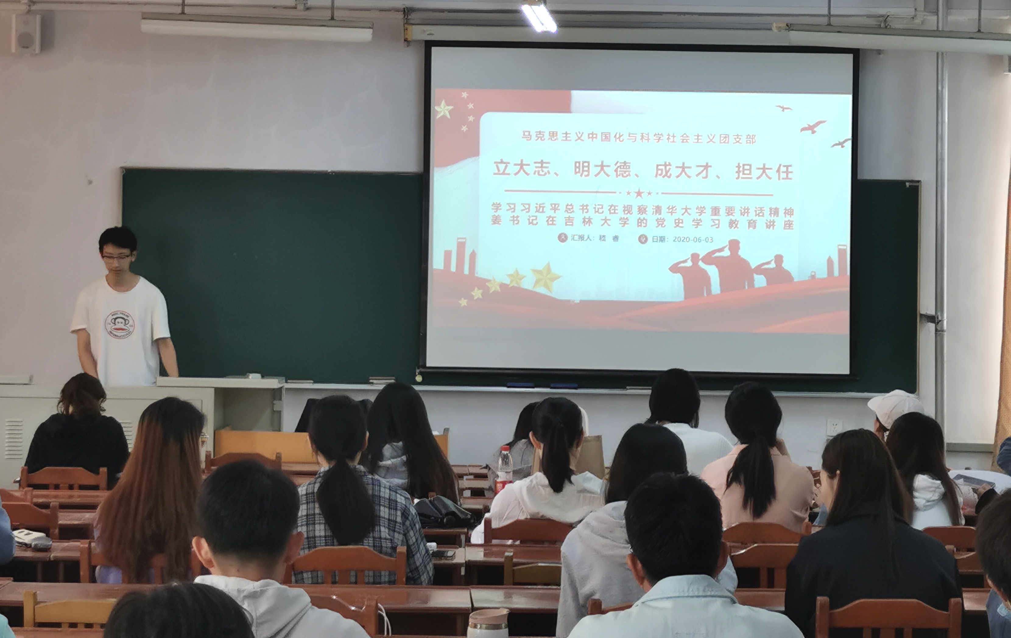 与中国共产党血脉相承的历史进程,使大家真正做到“不忘党史、牢记校史,为实现伟大梦想建立新功”。最后,大家陆续上台分享自己对于学习习近平总书记和姜书记重要讲话的感悟,并由团支书嵇睿总结本次会议的核心内容,强调同学们要把党史教育融入到生活中去,要把讲话精神贯彻到生活中去,把学史成效转化为强大的精神动力。