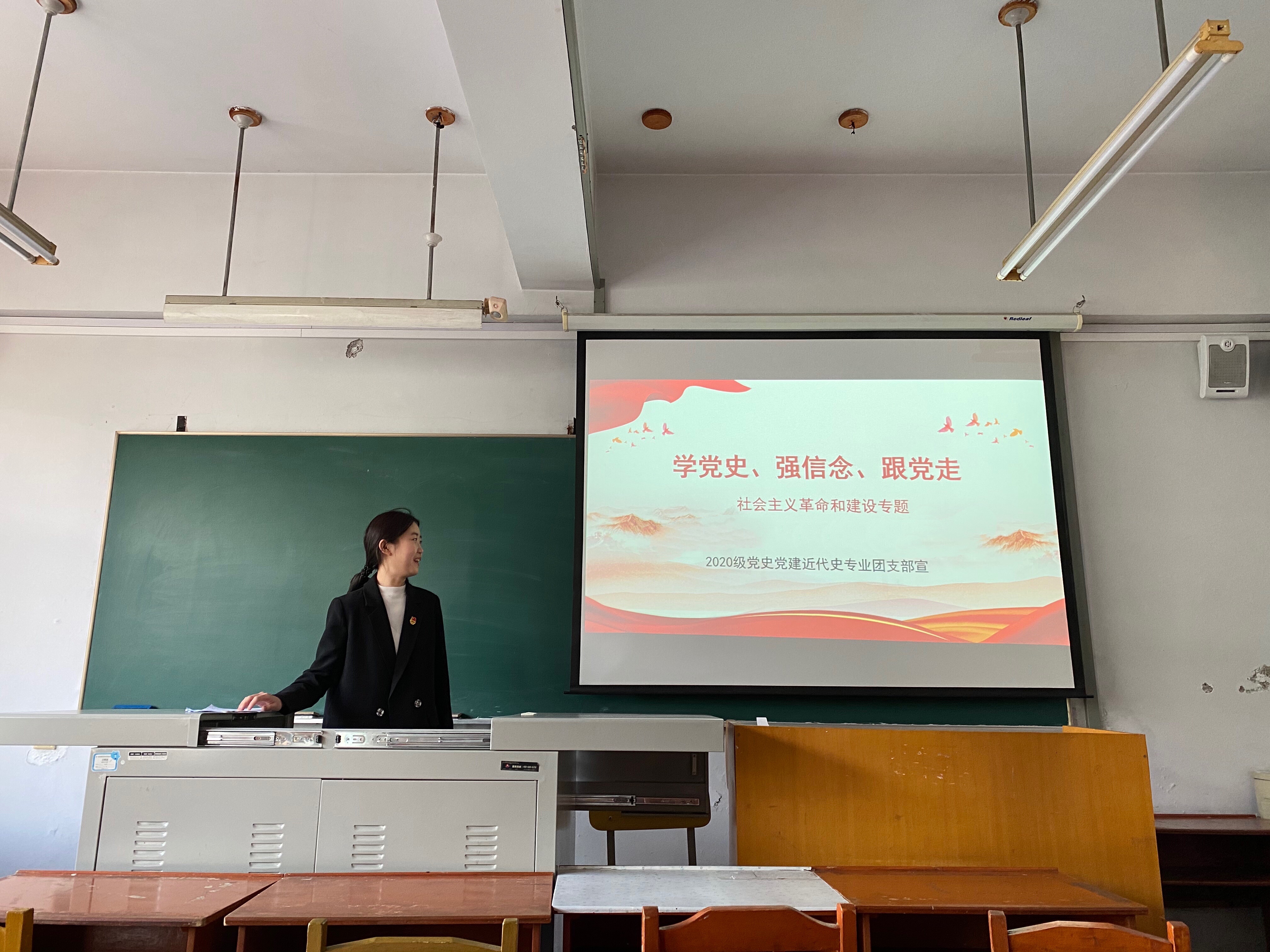 2020级硕士党史党建近代史团支部于5月29日成功开展“学党史、强信念、跟党走”学习教育之“社会主义革命和建设专题”学习会。此次学习会由团支部书记魏广玉主持。