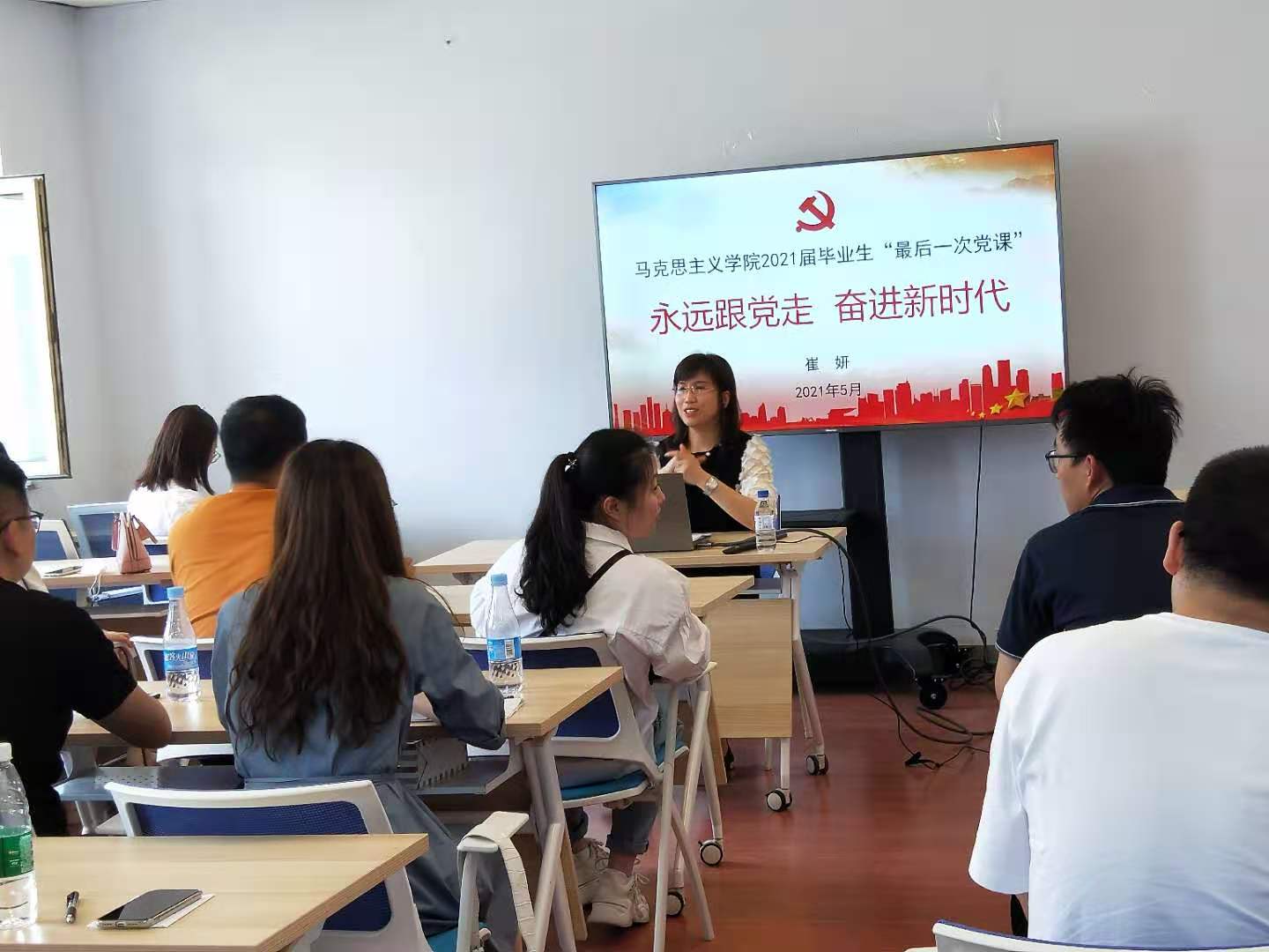 党委副书记、纪委书记崔妍主讲,学院部分毕业生党员参加了此次会议。