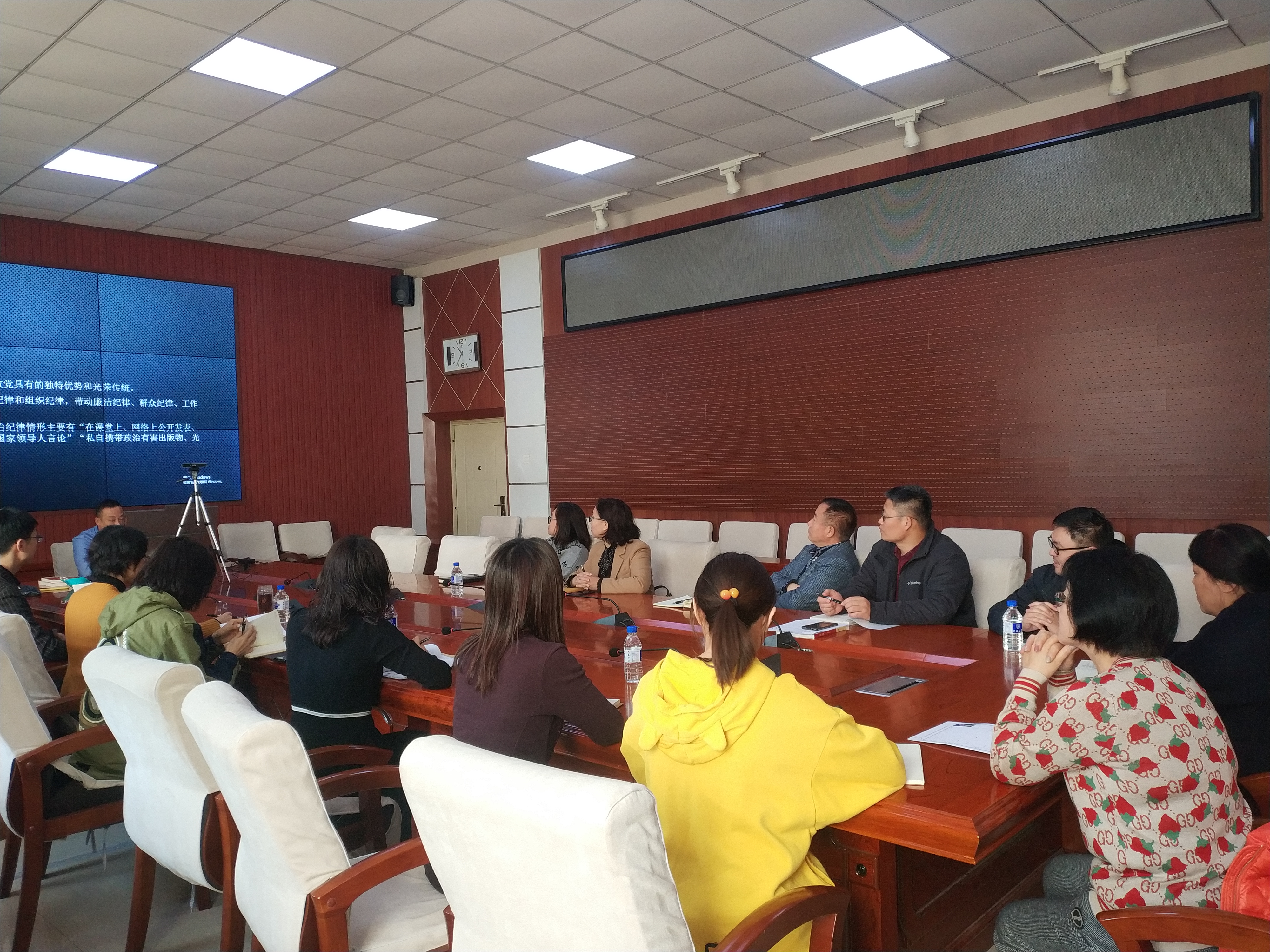 党委在学院多媒体会议室组织召开了党风廉政教育专题学习会。会议采取线上和线下相结合的方式进行,学院领导班子成员、行政管理人员进行现场学习,学院其他教工通过线上学习。专题学习会由学院概论教研室张克成同志主讲,由学院党委副书记、纪委书记崔妍同志主持,学院党委书记霍志刚同志做总结。