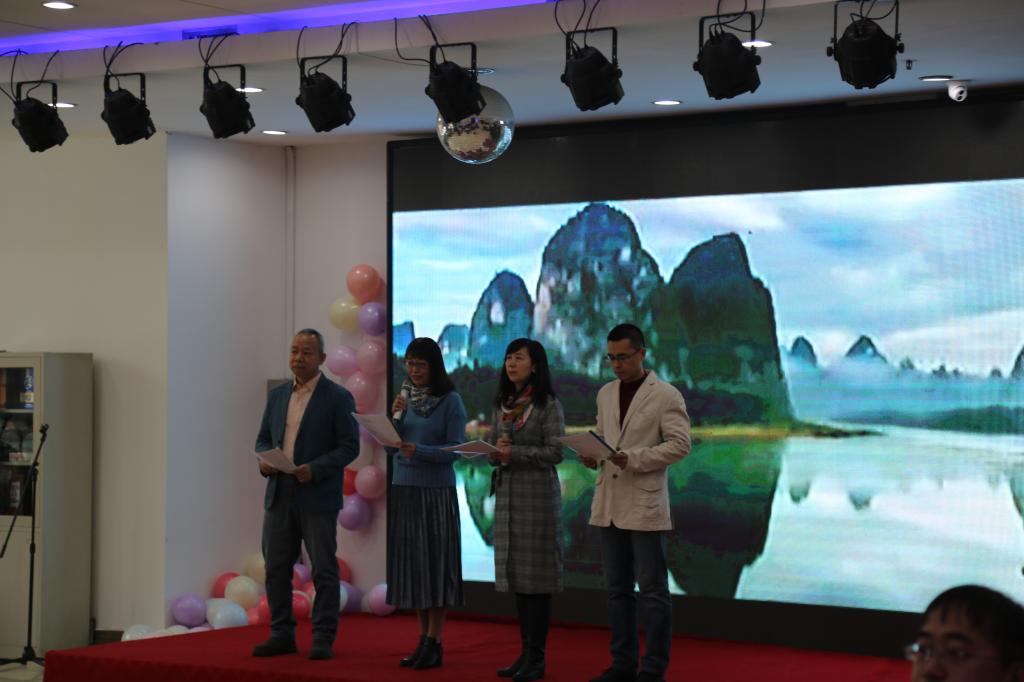 行政人员亲如一家的深厚情感;概论教研室的大合唱《团结就是力量》刚劲有力,表现出马院教师团结一致迎接美好明天的决心;原理教研室杨洪兴老师在联欢会上为大家带来原创诗歌朗诵《新时代的英雄》,文采飞扬、情真意切。此外,形势与政策教研室、研究生教研室分别带来原创三句半,诙谐幽默,引得大家叫好声不断。退休教师庞雅莉和邓如辛也分别带来《彩绸舞》和笛子独奏《大海航行靠舵手》。在丰富多彩的节目中,还穿插着抽奖环节和游戏环节,大家笑声不停,掌声不断,场面非常热烈。最终,联欢会在纲要教研室的大歌唱《歌唱祖国》中落下帷幕。