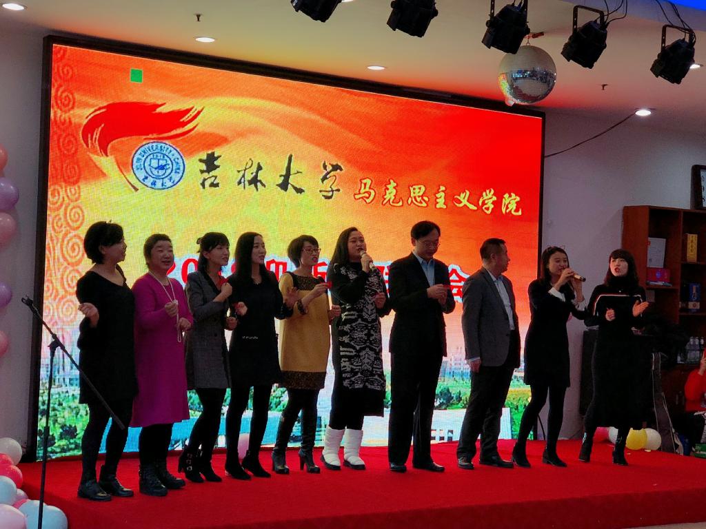 联欢会在优美的歌伴舞《国家》中拉开帷幕。联欢会上,学院七个教研室近百位老师及研究生、本科生共同参演,节目形式多样,精彩纷呈,老师们和同学们用不同的方式表达对新年的祝福。概论教研室的诗朗诵《我爱你中国》饱含深情,表达了马院教师对祖国的深切感情;形势与政策教研室的合唱《相逢是首歌》歌声婉转,展示了老师们真挚的情谊;行政办公室兰去非一支《惊鸿舞》优雅飘逸、引人入胜;基础教研室大合唱《外婆的澎湖湾》曲调优美,使观众在轻快的节奏中回忆起童年时光;研究生教研室盛装合唱《阿瓦人民唱新歌》,极具民族特色,气势恢宏;副院长吴宏政一曲吉他弹唱《外面的世界》引发全场合唱,将联欢会推向高潮;行政办公室的老师为大家带来歌曲串烧《相亲相爱》,携手展现韩国色情