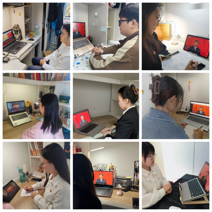 师生们认真聆听、学习、热议习近平总书记的报告。学院各党支部纷纷在会后组织开展交流讨论,分享心得,畅谈感受,在全院兴起了学习宣传党的二十大精神的学习热潮,营造了浓厚的学习氛围。