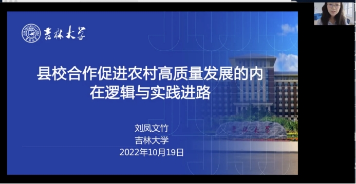 刘凤文竹从县校合作促进农村高质量发展的内在逻辑与实践进路的角度理解二十大会议理论。总结为三个方面。第一个方面是农村高质量发展的基本内涵。第二方面是县校合作促进农村高质量发展的内在逻辑。第三方面是县校合作促进农村高质量发展的实践进路。从原始的“给钱给物”到现在的内生性的发展进行了深入的介绍。