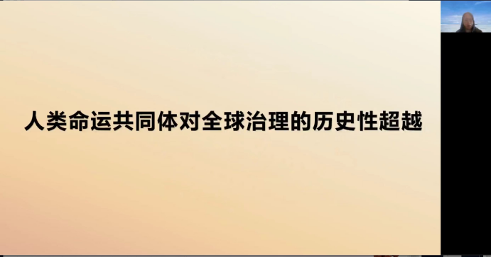 李亚琪从人类命运共同体对全球治理的历史性超越的角度理解二十大会议理论。总结为四个方面。第一方面,破解全球治理困境的中国智慧。第二方面,以全人类共同价值为价值观基础,凝聚全球治理价值共识。第三方面,积极履行大国责任,助力全球治理体系实践变革。第四方面,践行多边治理,建构全球治理主体间伙伴关系。从人类命运共同体的角度对二十大报告理论精神进行讲解。