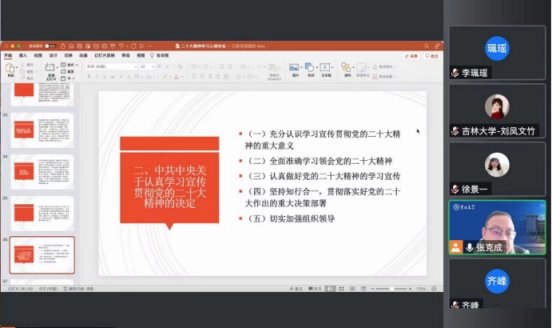 毛泽东思想和中国特色社会主义理论体系概论党支部与教研室通过腾讯会议召开了党的二十大精神学习研讨会。会议由概论党支部书记张克成主持。