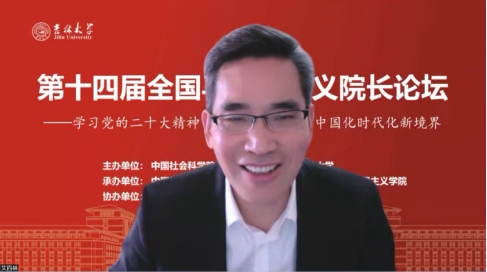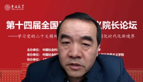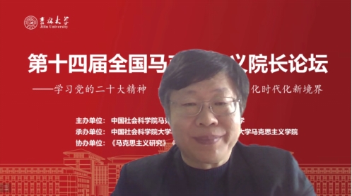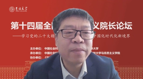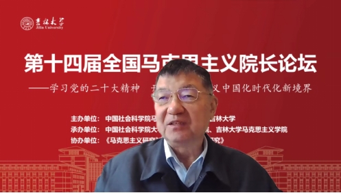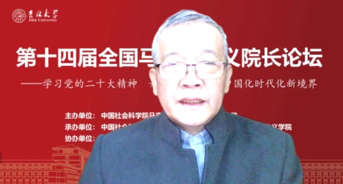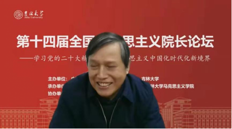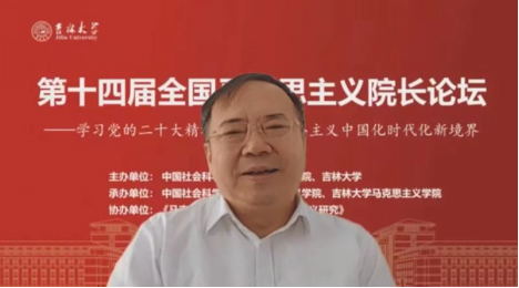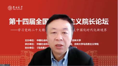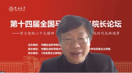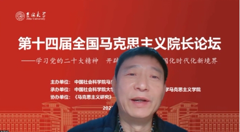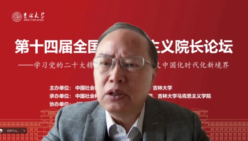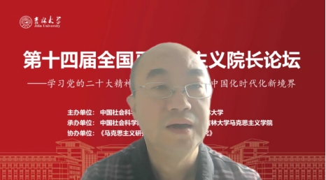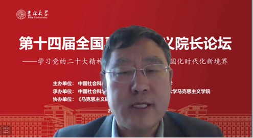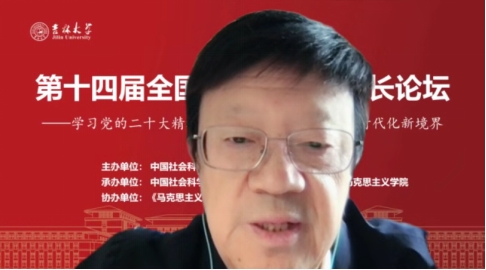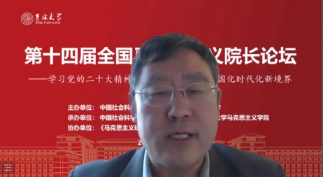 共同承办,《马克思主义研究》和《世界社会主义研究》杂志社协办的“第十四届全国马克思主义院长论坛”在线上顺利召开。本次院长论坛的主题为“学习贯彻党的二十大精神,开辟马克思主义中国化时代化新境界”。来自中国社会科学院、中共中央党校(国家行政学院)、清华大学、北京大学等高校近80位马克思主义理论界权威专家和院长分别做了主旨报告。线上参会人数达到200多人,直播观会人数超1000人。论坛分为主旨报告和分论坛主题报告两部分进行。