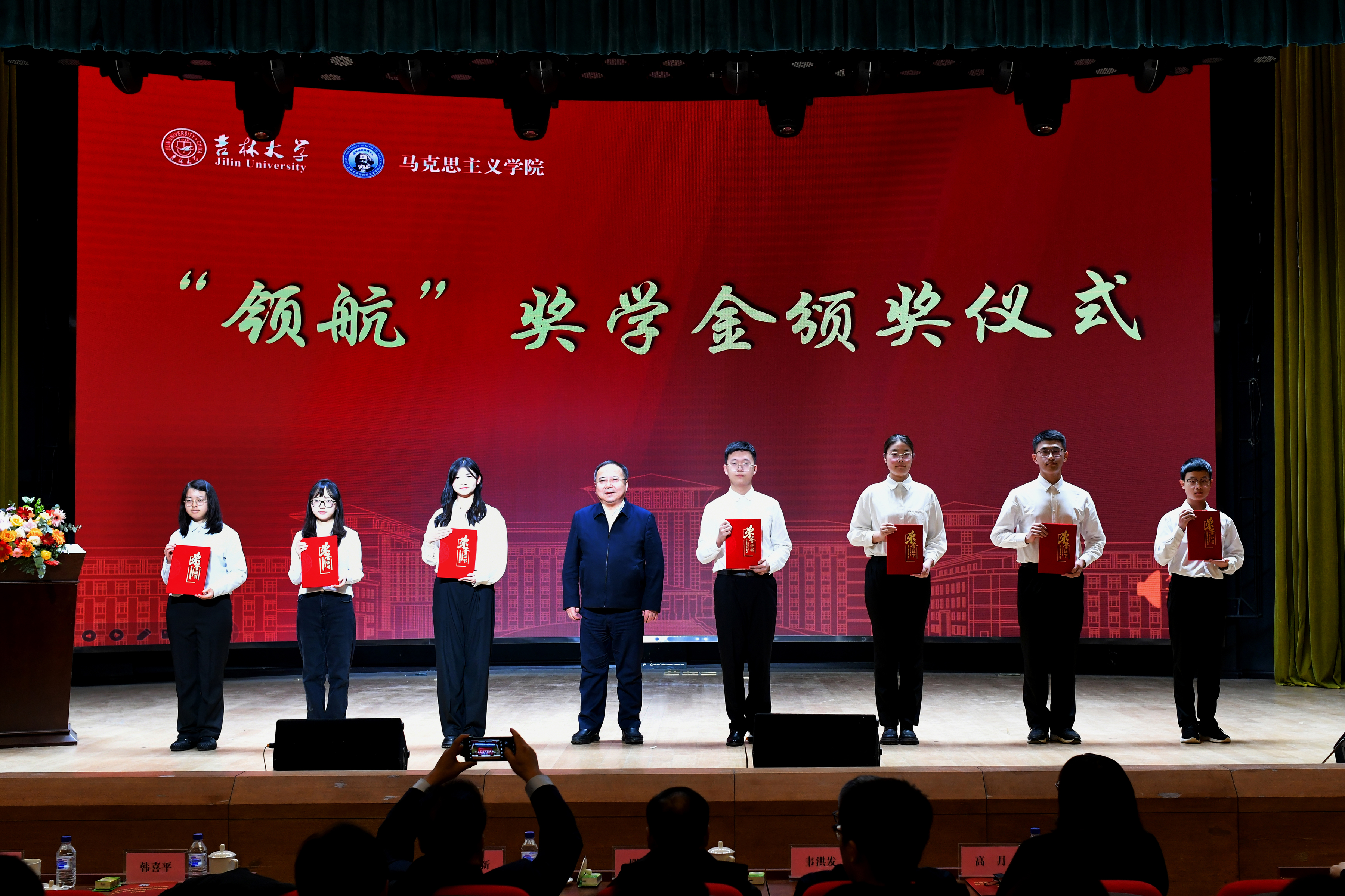 开学典礼在全场庄严奏唱中华人民共和国国歌中拉开了序幕。首先进行“领航”奖学金颁奖仪式,校党委副书记韩喜平为7名获得“领航”奖学金的本科生颁奖。“领航”奖学金是韩喜平书记用个人所获奖金创立的资助项目,用于教育、培养学院本科生,体现了韩书记对马克思主义学科发展和对学院“为党育人、为国育才”的深深关切。