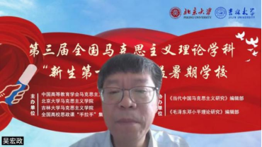 吴宏政代表主办方对支持本次活动的专家学者表示由衷的感谢,并对线上参与学习的学员圆满完成课程表示祝贺。吴院长指出,本届暑期学校规模大,影响力强,在选题策划上注重前沿性,贴近学生的学习实际,高度重视经典,教学主题鲜明,教学效果精彩,给学员们奉献了精彩的思想盛宴,澄清了马克思主义理论新生学术成长中的部分疑惑,激发了学员们未来的学习与研究热情。希望学员们继续学习党的创新理论,注重马克思主义经典的阅读,将自己培养成为让党放心、爱国奉献、担当民族复兴重任的时代新人。