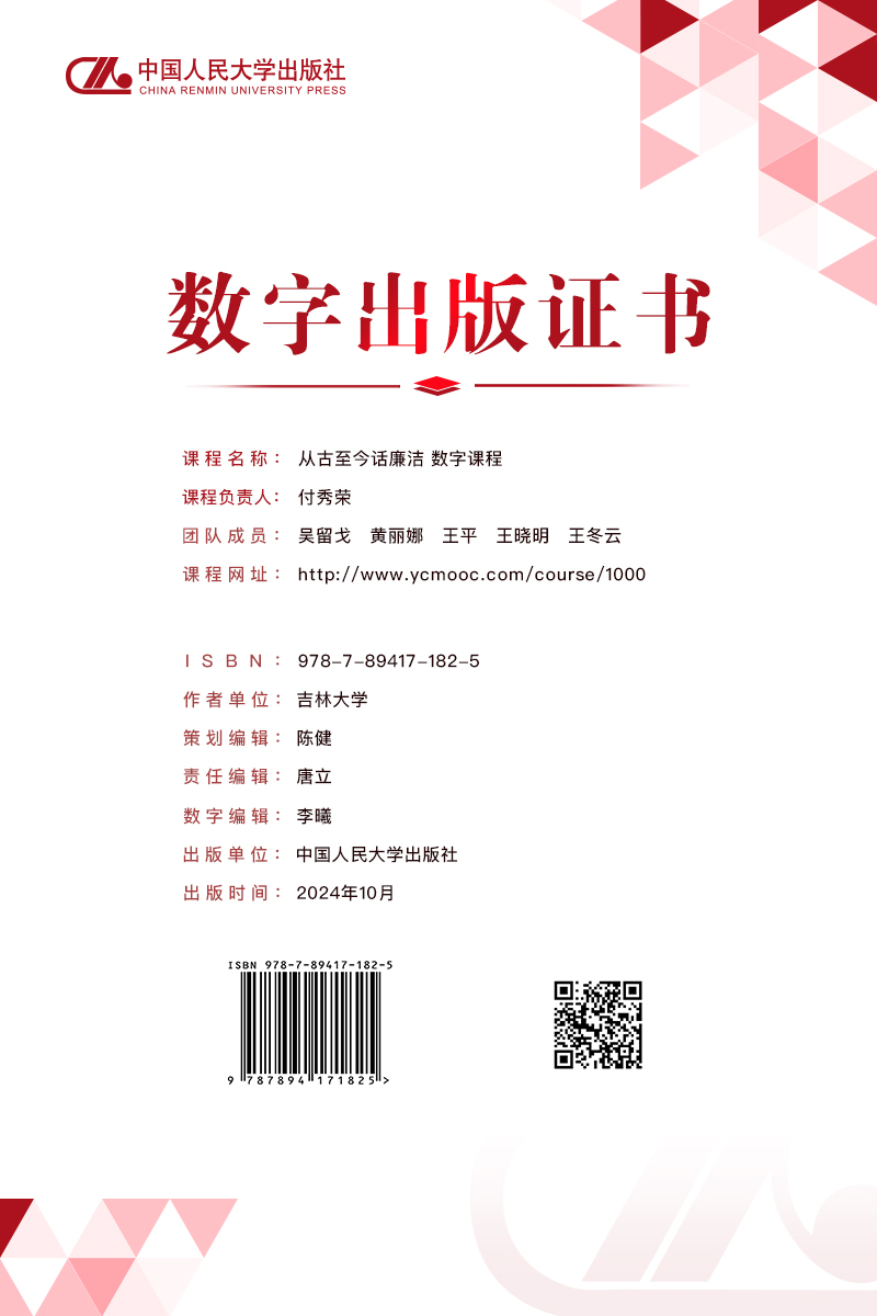 一门数字课程——《从古至今话廉洁》,由中国人民大学出版社正式出版上线,实现了韩国色情