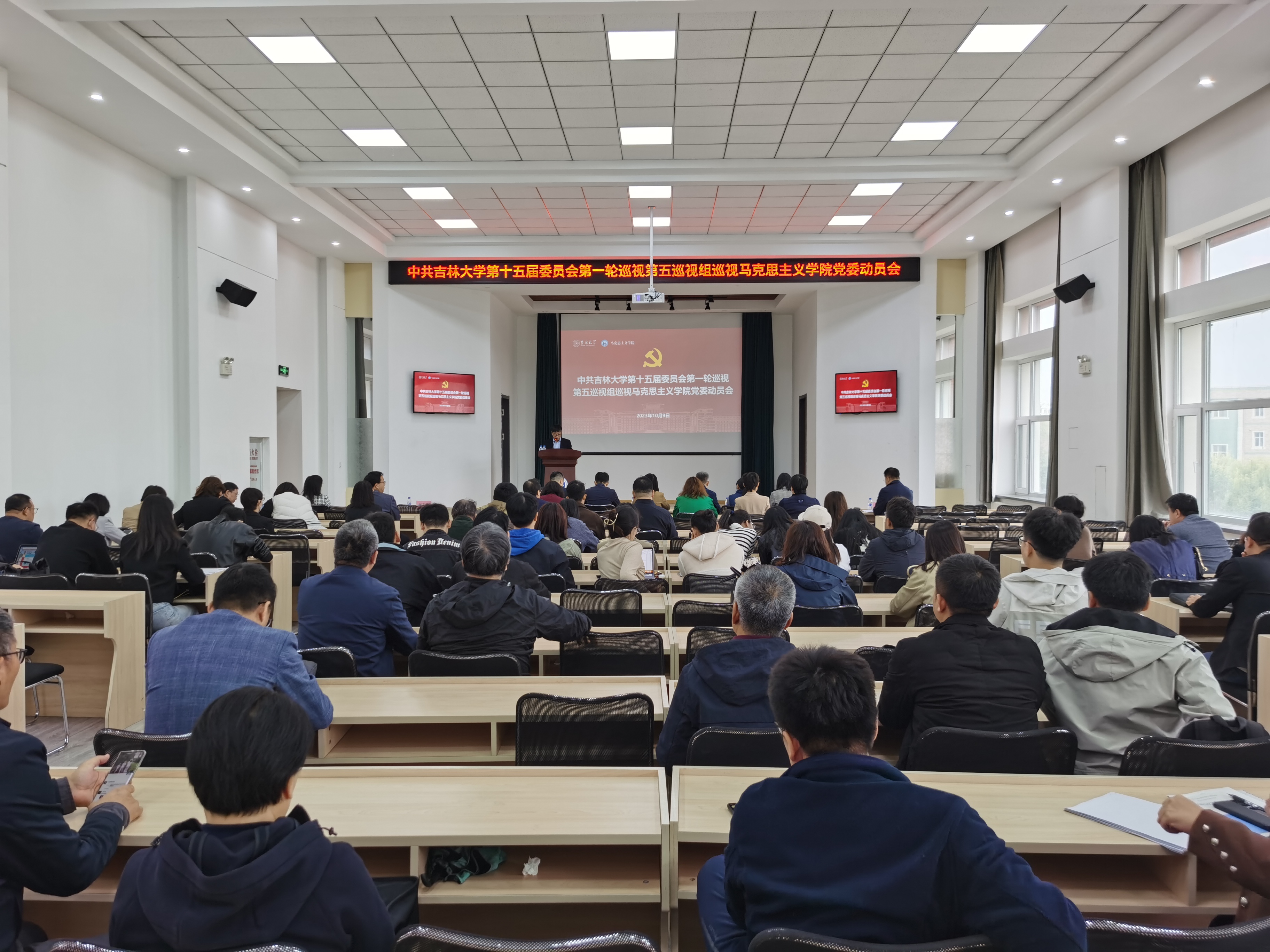 根据学校党委关于巡视工作的统一部署,2023年10月9日9时,学校党委第五巡视组巡视韩国色情 党委动员会在南湖校区图书馆四楼报告厅召开。党委第五巡视组组长张蓼红及全体成员,学院领导班子全体成员,党委委员、纪委委员,学术委员会、学位评定分委员会、教学委员会成员,支部书记、教研室主任,教职工代表、民主党派代表、学生代表等参加了会议。会议由院长吴宏政主持。