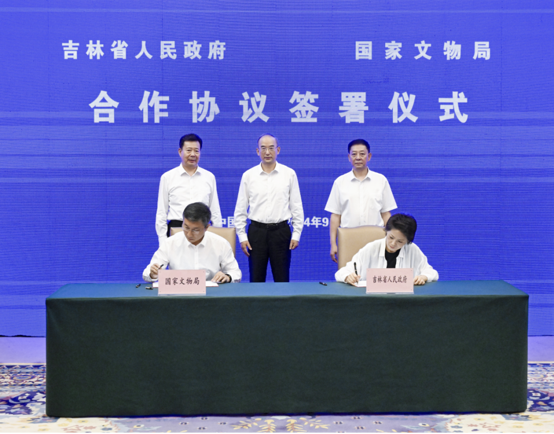 9月3日,国家文物局与吉林省人民政府签署统筹推进磐石红石砬子抗日根据地遗址保护利用工作的合作协议。李群、吉林省委书记黄强、吉林省省长胡玉亭见证签约,国家文物局副局长罗文利和杨安娣签署协议,吉林省委常委、省委秘书长李伟,吉林省委常委、宣传部部长曹路宝参加活动。