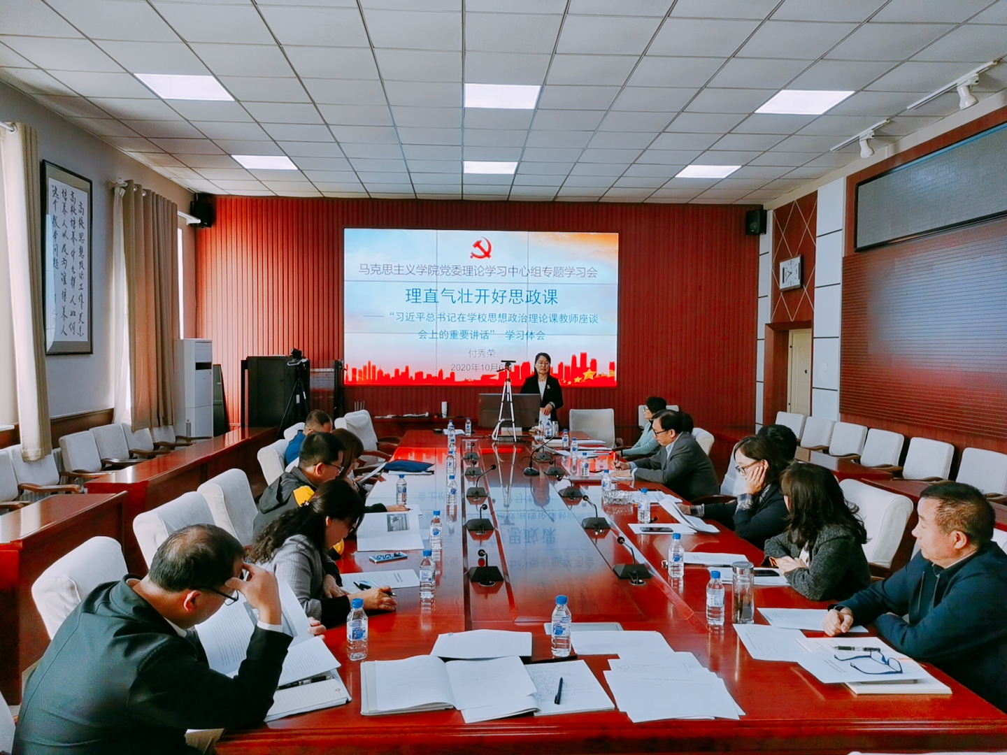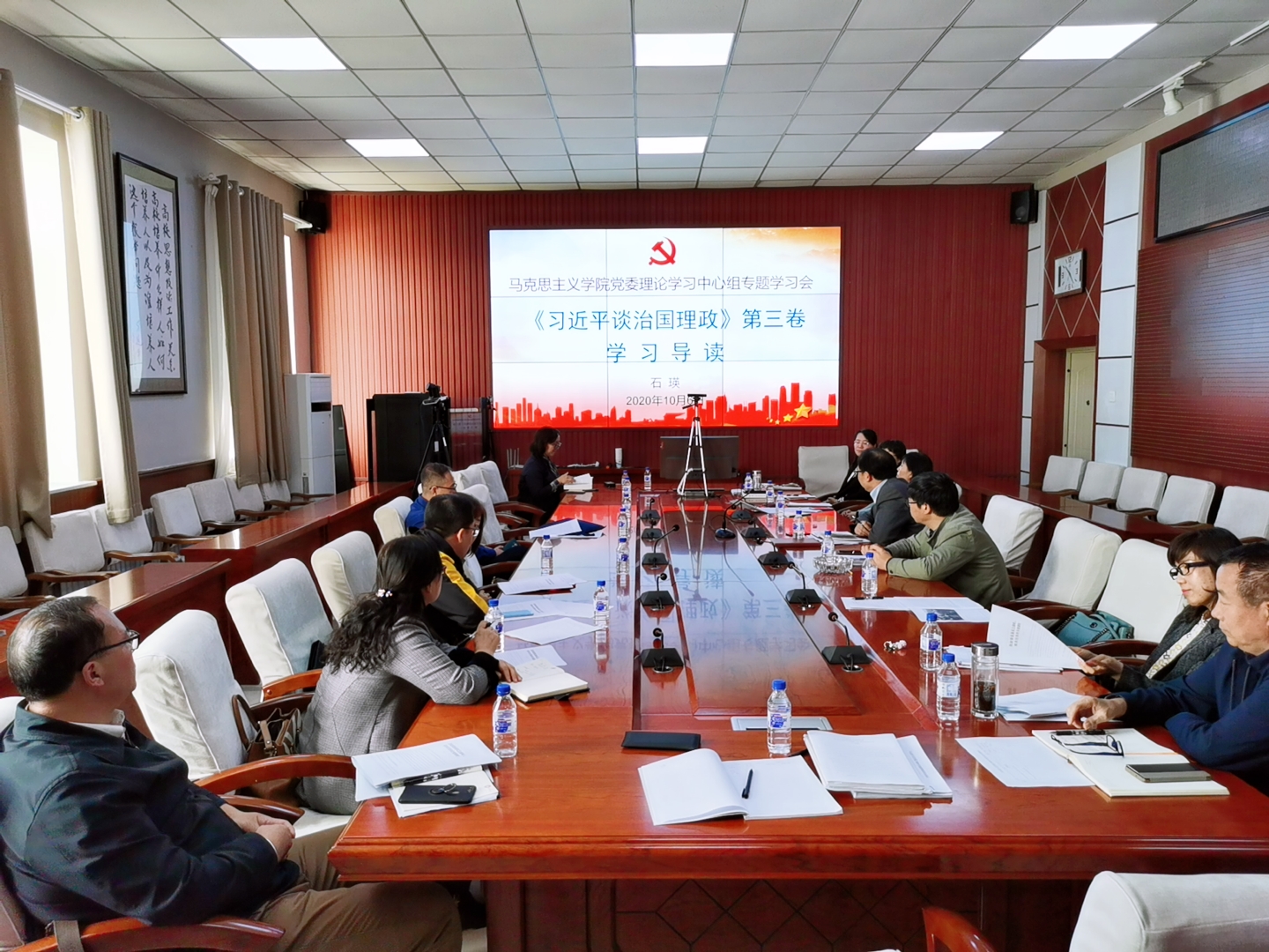 党委理论学习中心组召开学习习近平在学校思想政治理论课座谈会上的讲话和《习近平谈治国理政》第三卷专题学习会。学院党委理论学习中心组全体成员参加了此次学习会,会议由学院党委书记霍志刚主持。
